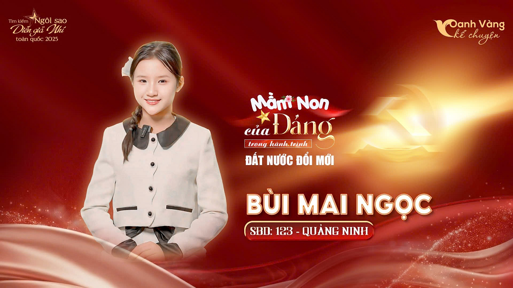 Bùi Mai Ngọc (SBD 123, Quảng Ninh) là một trong những gương mặt nổi bật của cuộc thi khi gây ấn tượng với giọng kể truyền cảm, sâu lắng và phong thái tự tin. Phần dự thi được đầu tư chỉn chu, mạch lạc cả về nội dung lẫn hình ảnh, cho thấy sự nghiêm túc và nỗ lực rõ nét trong hành trình tham gia. Với khả năng giữ cảm xúc ổn định cùng lối kể chuyện cuốn hút, Mai Ngọc từng đạt lượt tương tác cao nhất tại vòng Sơ khảo và tiếp tục khẳng định bản lĩnh để góp mặt trong danh sách thí sinh bước vào vòng Chung kết.