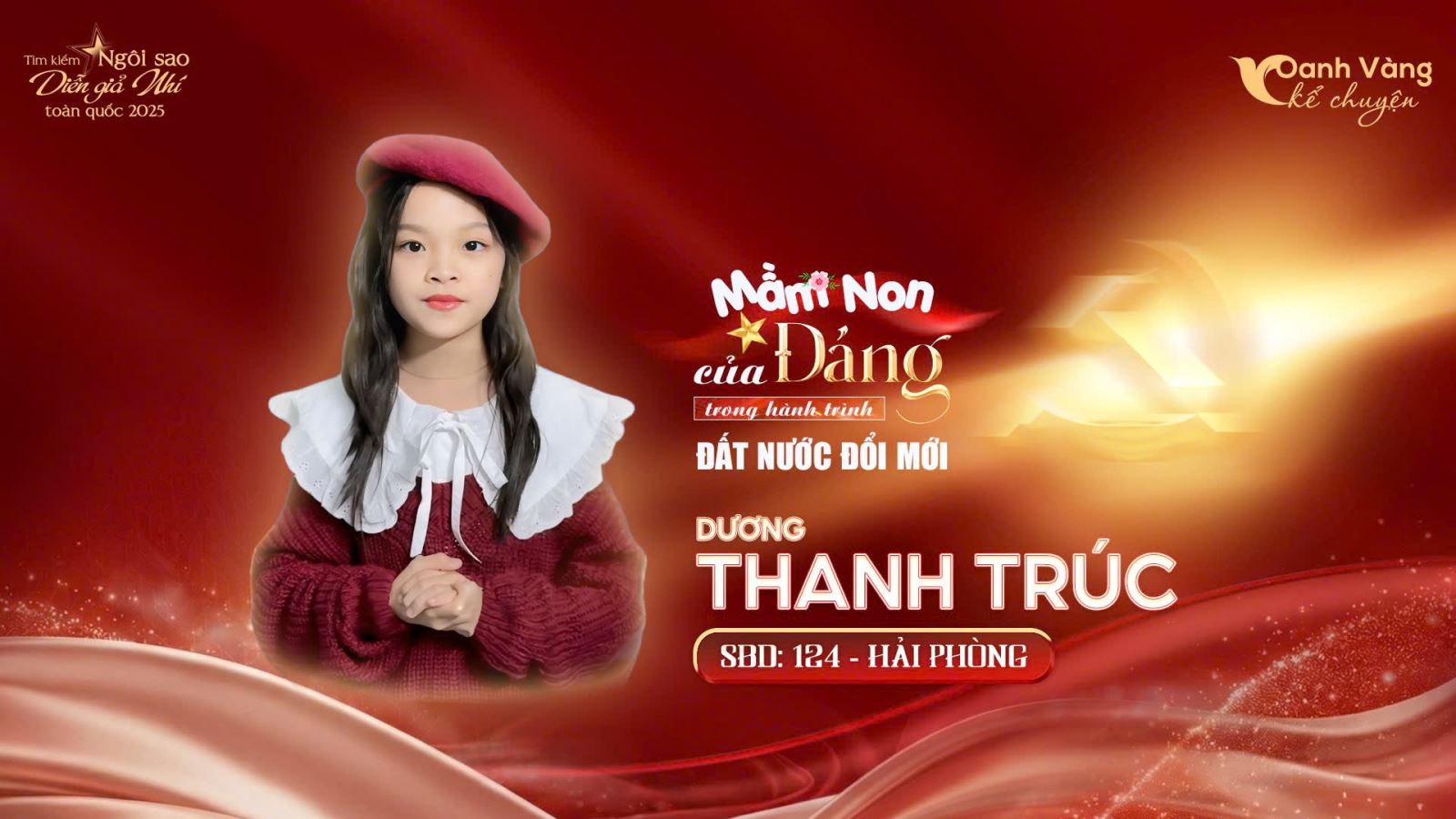 Dương Thanh Trúc (SBD 124, Hải Phòng) ghi dấu ấn với phong thái tự tin cùng giọng kể khỏe, rõ ràng, truyền tải nội dung mạch lạc và giàu năng lượng. Phần thể hiện cho thấy sự chuẩn bị nghiêm túc cả về hình ảnh lẫn cách triển khai câu chuyện, đồng thời nổi bật ở khả năng sử dụng ngôn ngữ cơ thể linh hoạt để làm nổi bật cảm xúc. Với những điểm mạnh này, Thanh Trúc trở thành một trong những thí sinh rất đáng chú ý.