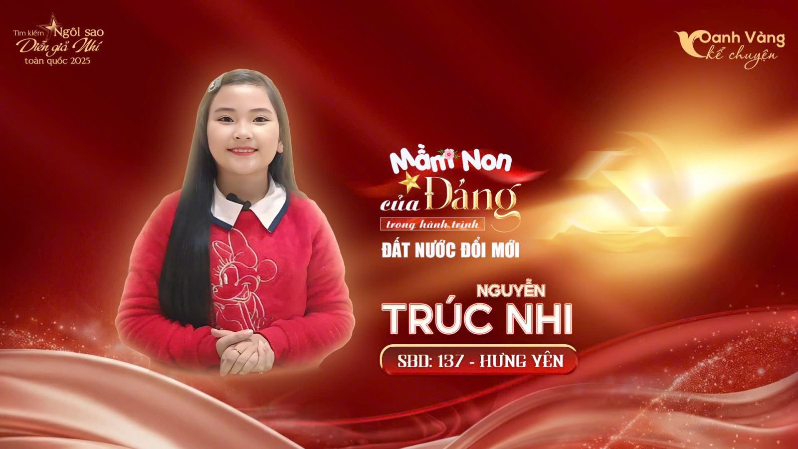 Nguyễn Trúc Nhi (SBD 137, Hưng Yên) dù là thí sinh nhỏ tuổi, Trúc Nhi vẫn kiên trì tham gia các vòng thi với sự chuẩn bị nghiêm túc, vượt qua những bỡ ngỡ ban đầu khi đứng trước ống kính. Phần thể hiện của bạn không quá cầu kỳ nhưng giàu cảm xúc, thể hiện sự cố gắng và tinh thần học hỏi rõ rệt qua từng vòng. Hành trình đến Chung kết của Trúc Nhi là câu chuyện về sự dũng cảm thử sức và từng bước trưởng thành.