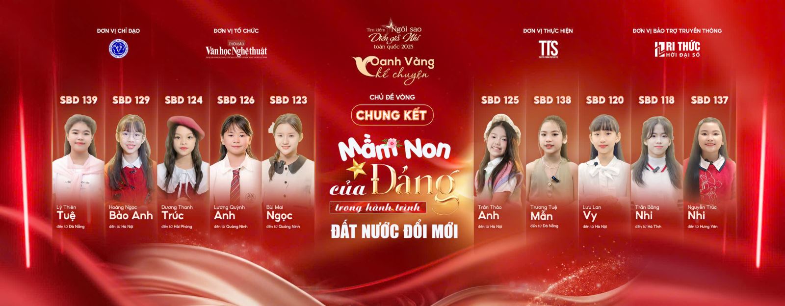 Khép lại hành trình, với chủ đề “Mầm non của Đảng trong hành trình đất nước đổi mới"”, Top 10 tại vòng Chung kết hứa hẹn sẽ mang đến những câu chuyện giàu ý nghĩa, thể hiện góc nhìn trong trẻo nhưng đầy trách nhiệm của thế hệ trẻ hôm nay.